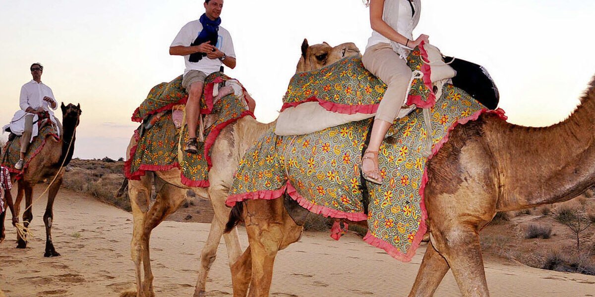 - Camel Safari in Dunes of Osian Desert (2 Guest Per Camel). Come back to camp after enjoying the ride and a beautiful sunset to a welcoming Campfire (common) and Evening for relaxation and energisation of your sole through traditional Rajasthani folk dance and music.